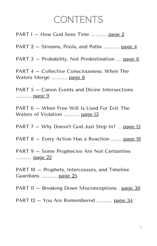 In The River of Time, you will be taken on a soul-deep journey through the currents of divine timing, spiritual detours, and destiny’s quiet call. Through esoteric insight, poetic reflections, and spiritual truths rooted in the Word, this 37-page guide uncovers how time flows differently for God, why some moments shift everything, and how to discern between divine intersections and distorted waters.